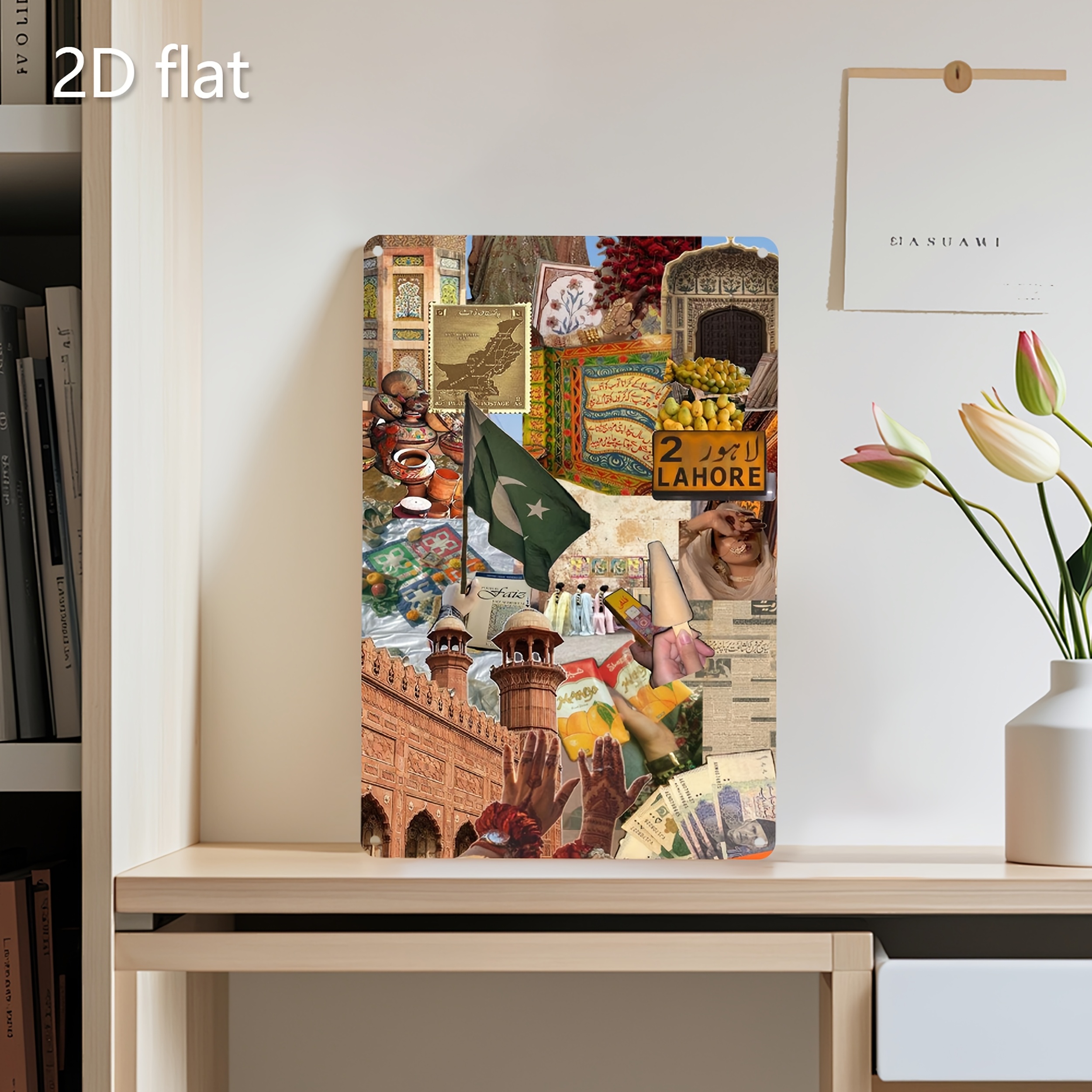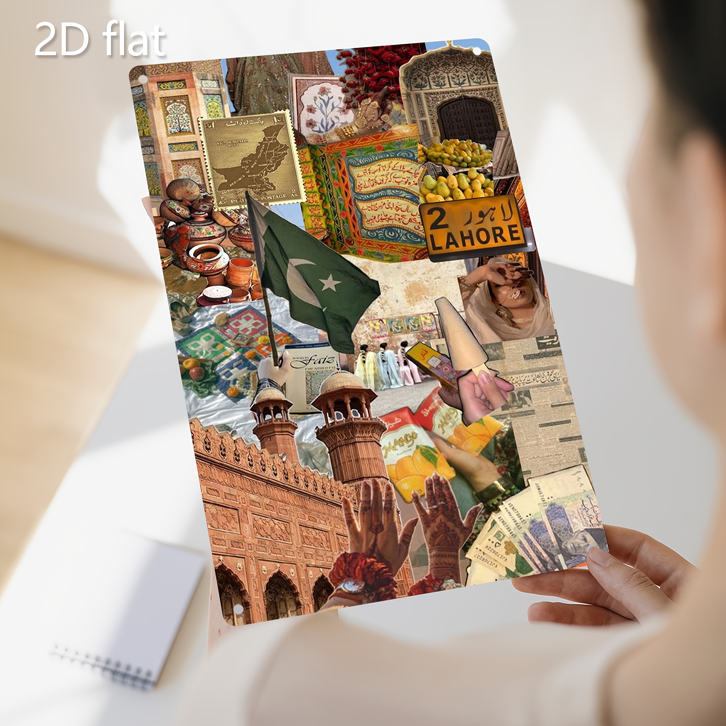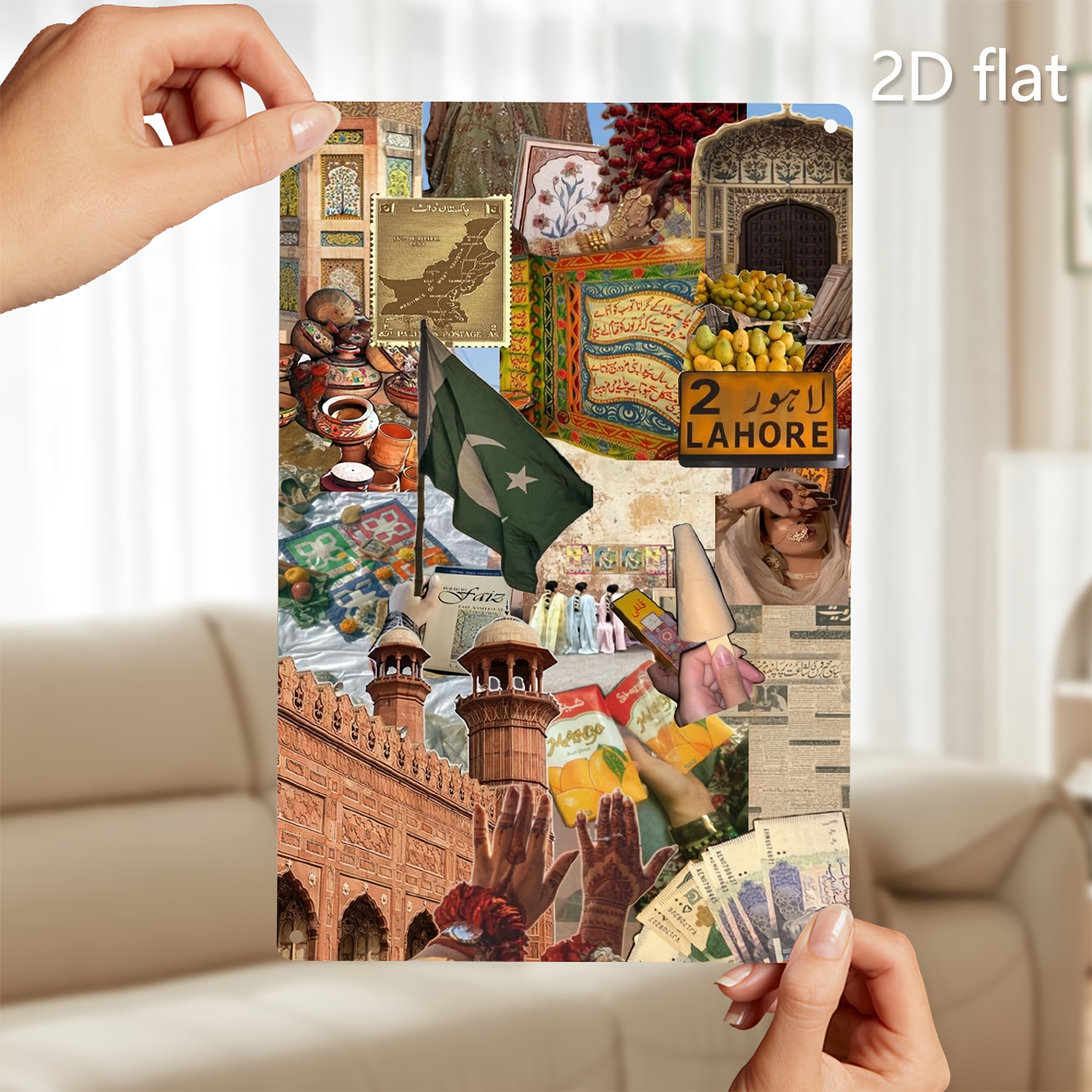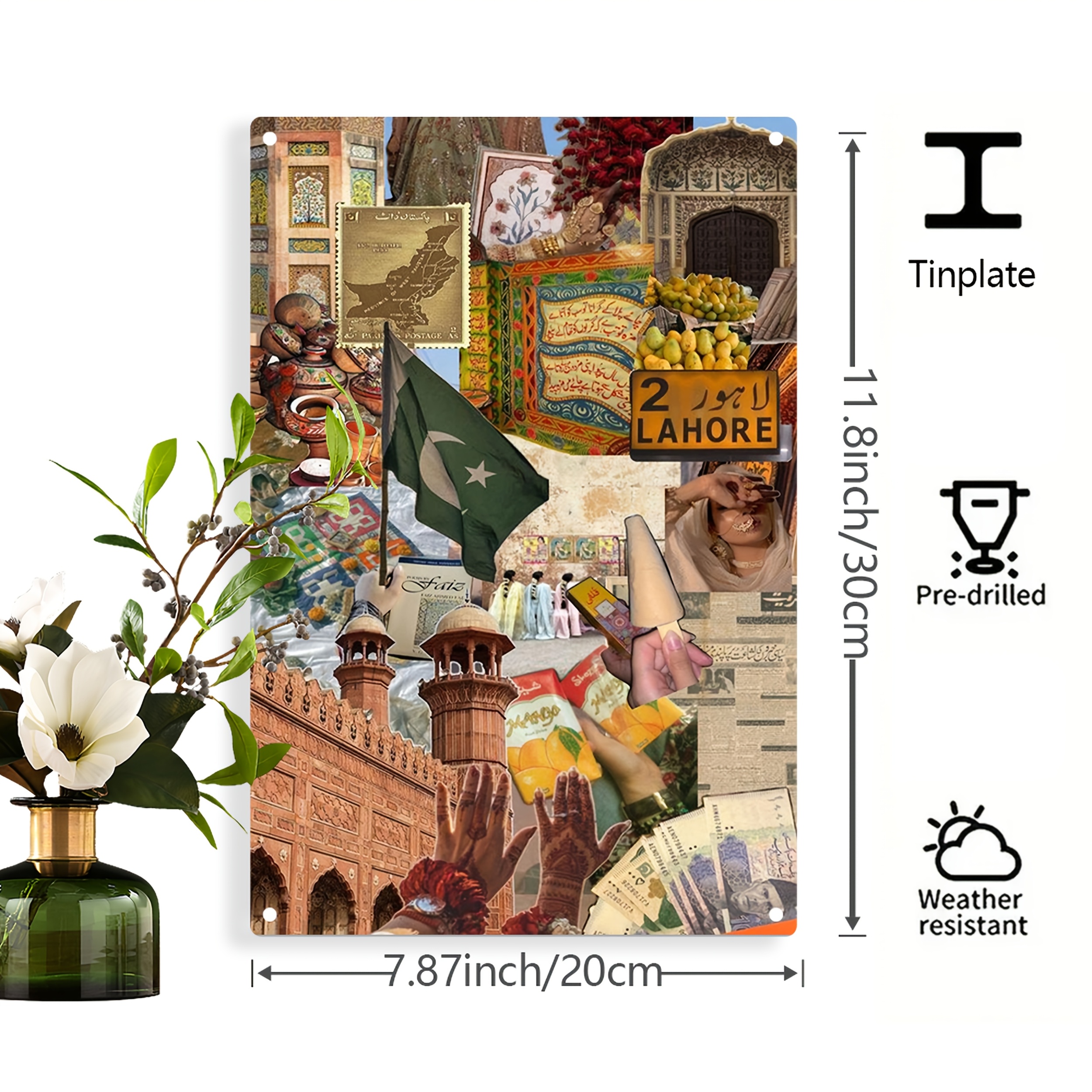 1pc Handcrafted Pakistan Cultural Mosaic Metal Wall Art - Vibrant Traditional Motifs, Weather-Resistant Iron, Pre-Drilled for Easy Hanging, 19.99x29.97 cm Indoor/Outdoor Decor for Living Room, Garden, Patio & Holiday Displays