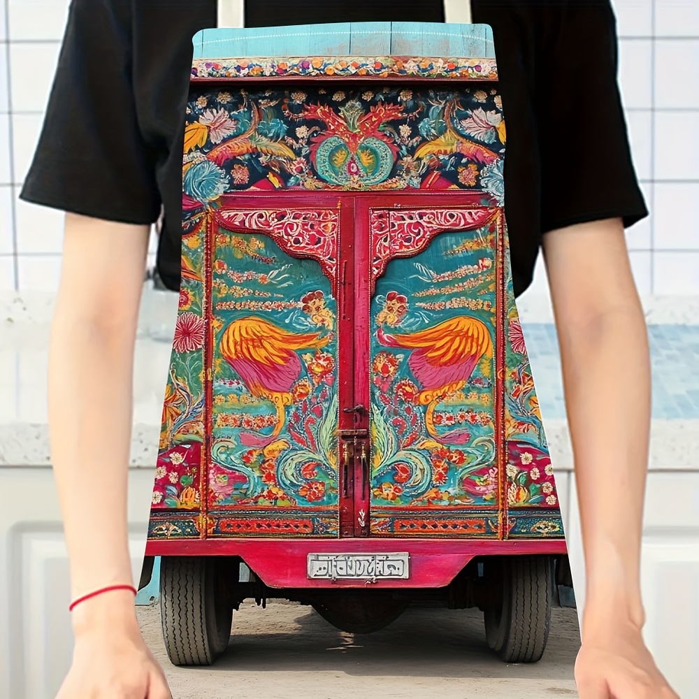 1pc stylish durable print apron, Pakistani Truck Art Inspired Design apron, gardening cooking chef apron, 54.99x68.0cm, for BBQ Kitchen Cooking Baking Crafting Restaurant YAWQ2583