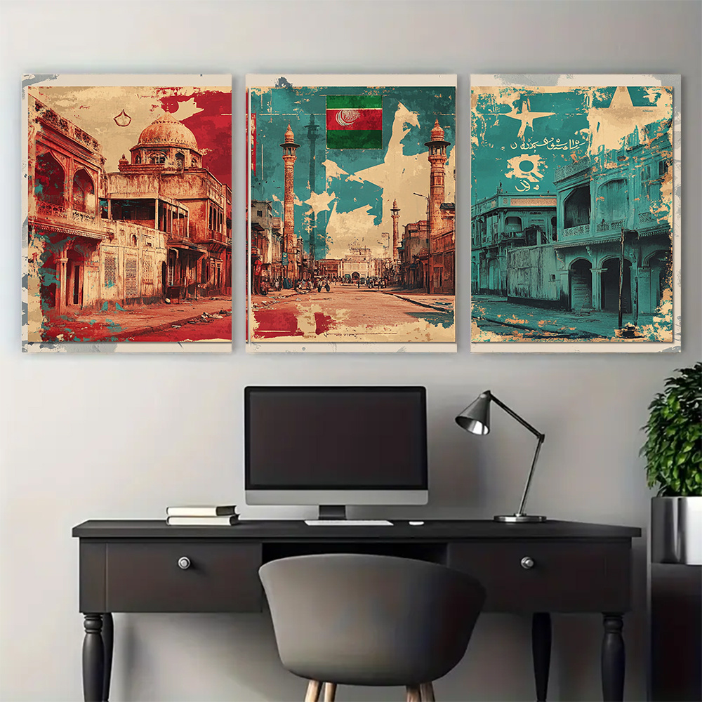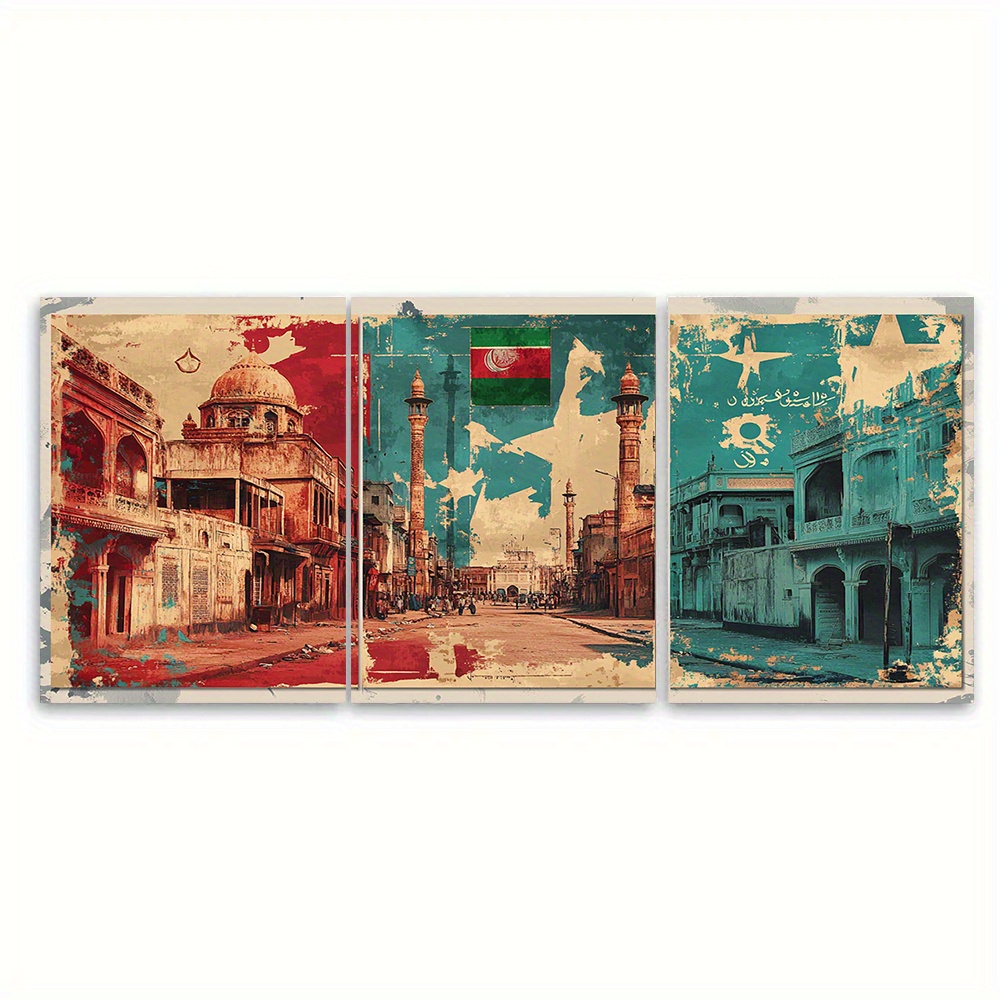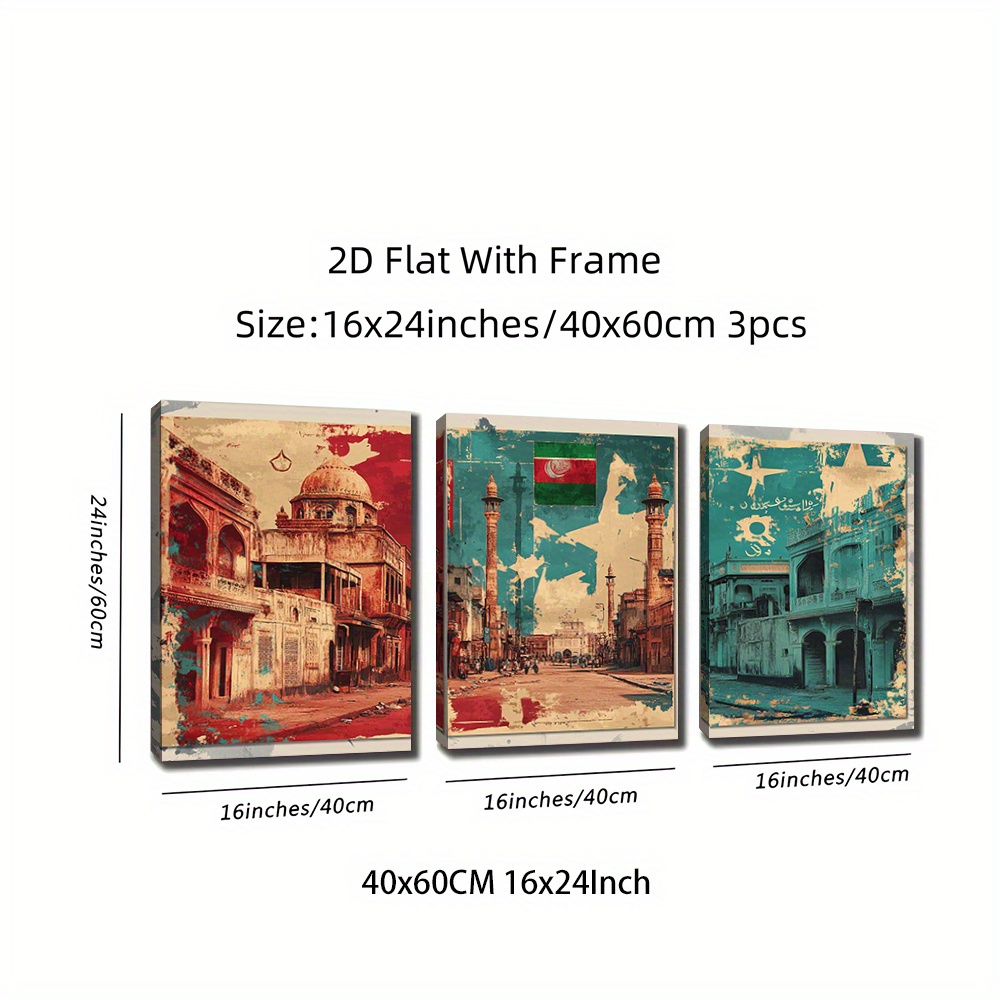 3pcs, 2D Flat Framed wall art - 40.64x60.96 cm, Pakistan Poster Set, Vintage Pakistani Street Art Prints, Islamic Art, Folk Art Poster, Arabic Indian Art, Muslim Gift, Wall Print, 2D Flat