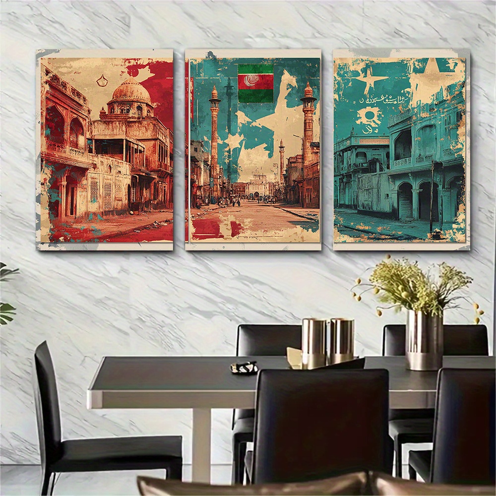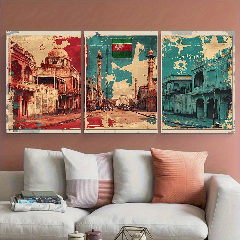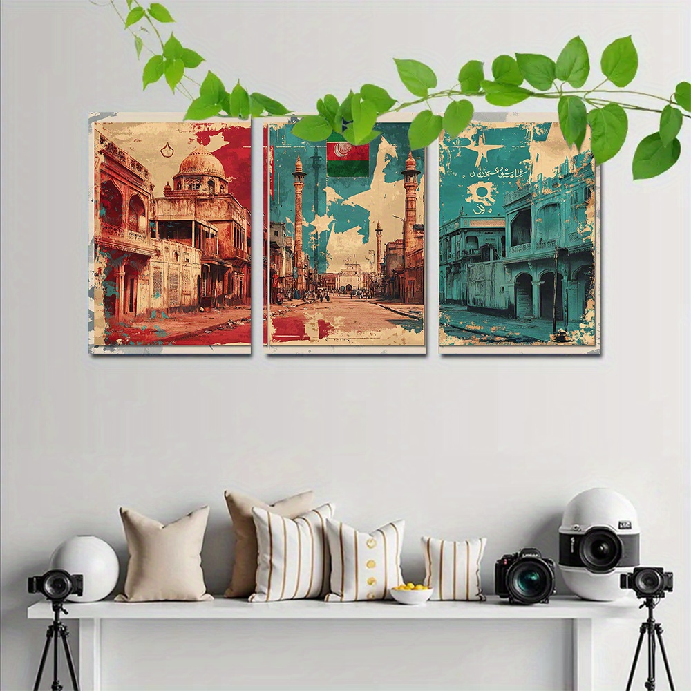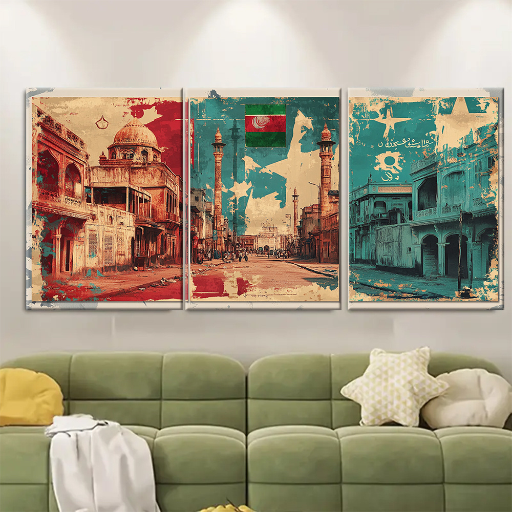 3pcs, 2D Flat Framed wall art - 40.64x60.96 cm, Pakistan Poster Set, Vintage Pakistani Street Art Prints, Islamic Art, Folk Art Poster, Arabic Indian Art, Muslim Gift, Wall Print, 2D Flat